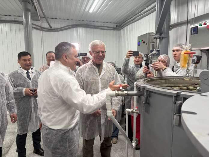 Предприятие «Усть-Орда Агро» посетили губернатор Иркутской области Игорь Кобзев и почетный гость — депутат Государственной думы РФ, председатель Всероссийского общества охраны природы Вячеслав Фетисов. Гости осмотрели предприятие и запустили производство мясных консервов.